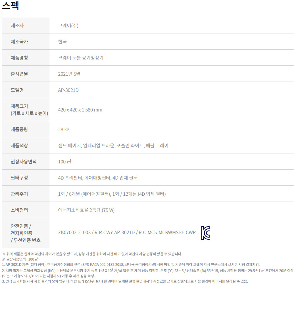 AP-3021D 코웨이 노블 30평 공기청정기 *월