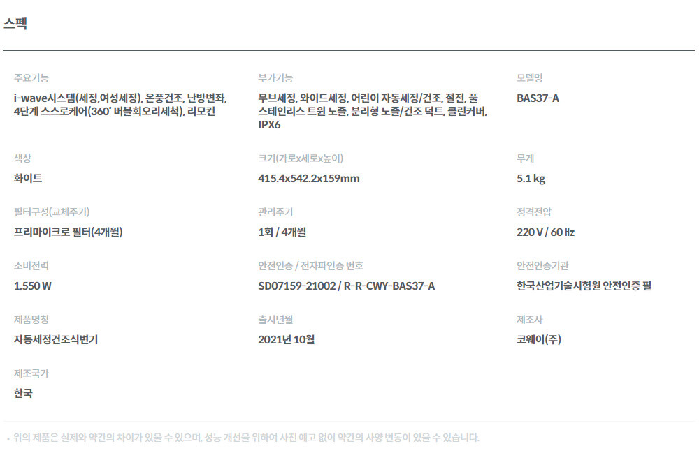 BAS37-A 코웨이 더블케어 리모트 비데 *월