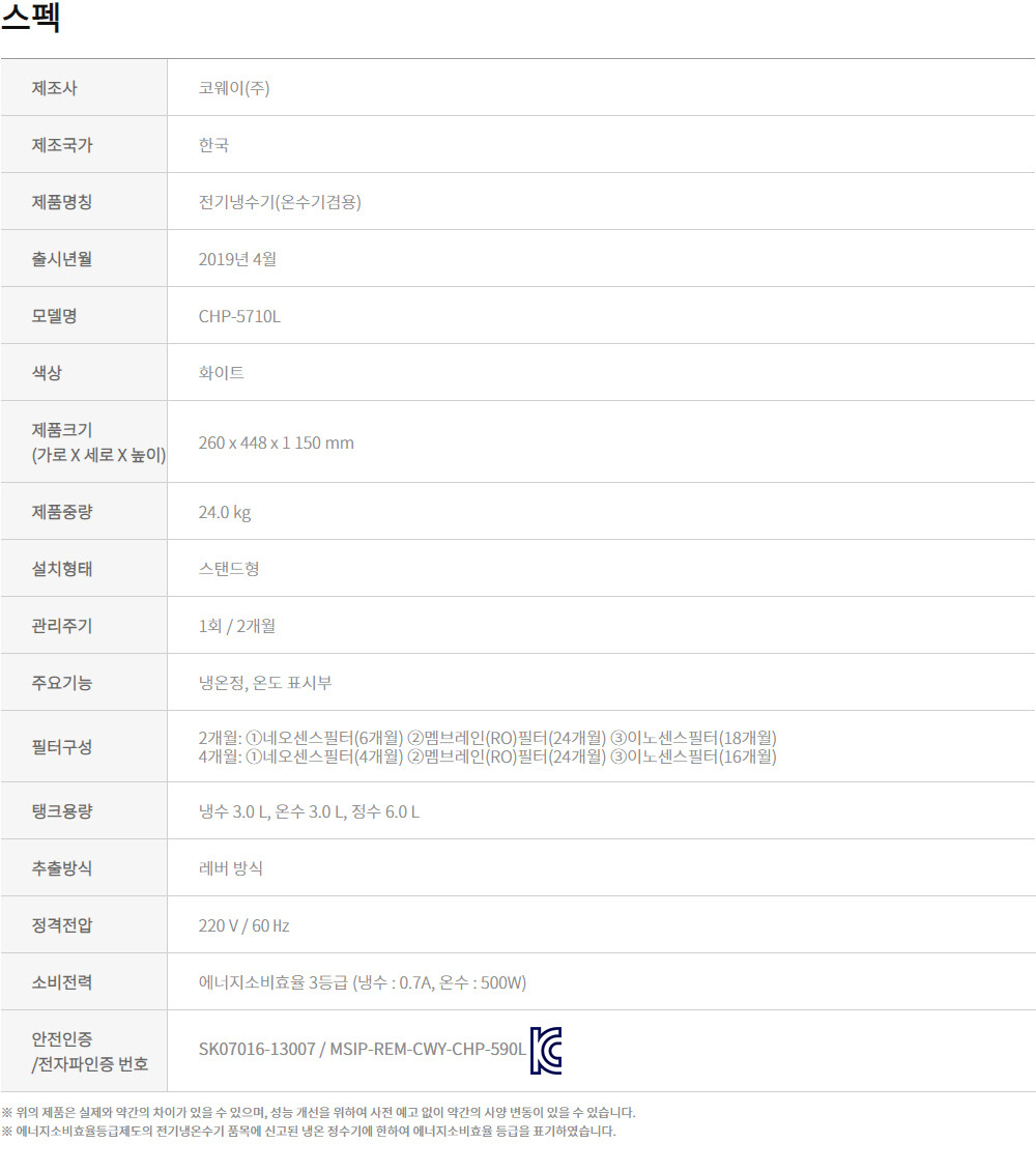 CHP-5710L 코웨이 워터 스탠드 정수기 *월