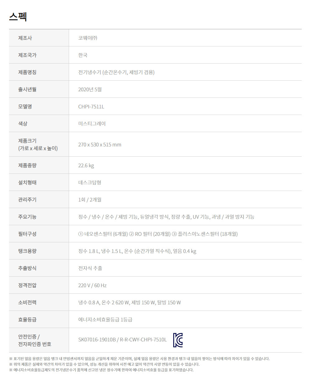 CHPI-7511L 코웨이 AIS 3.0 IoCare 냉온얼음정수기 *월