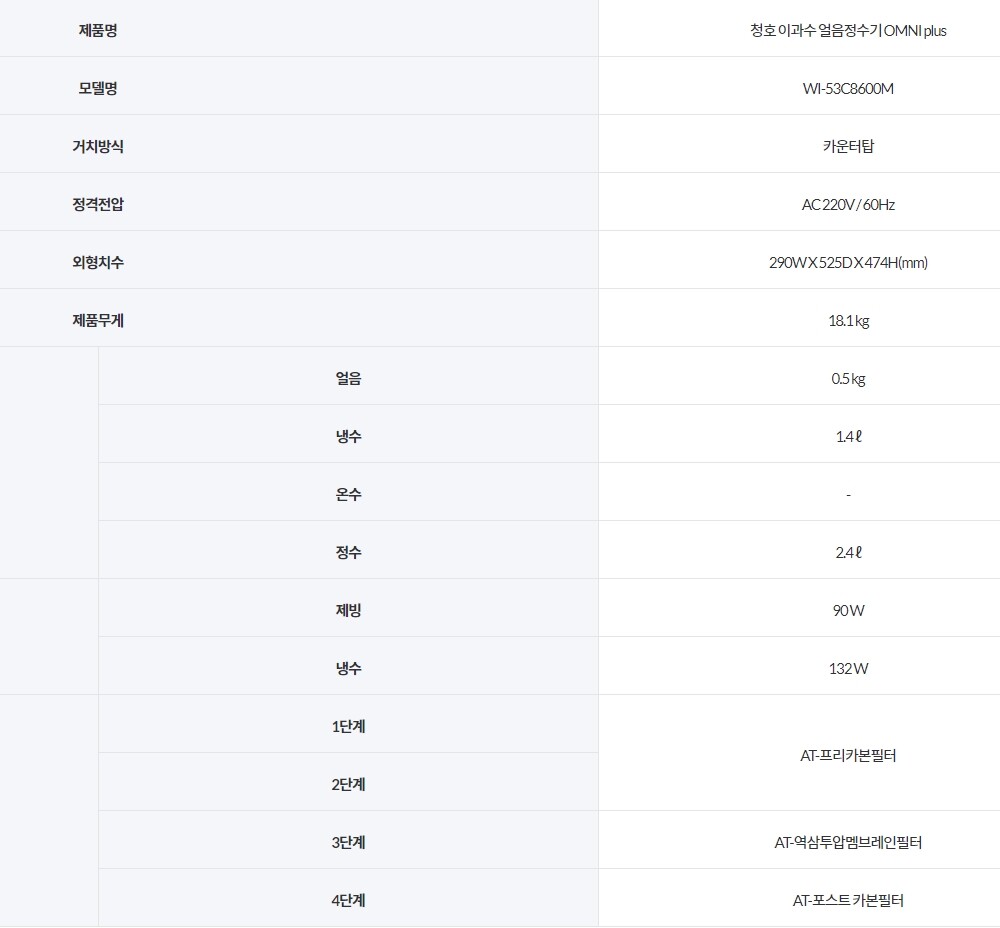 WI-53C8600M 청호나이스 OMNI plus 냉얼음정수기 *월