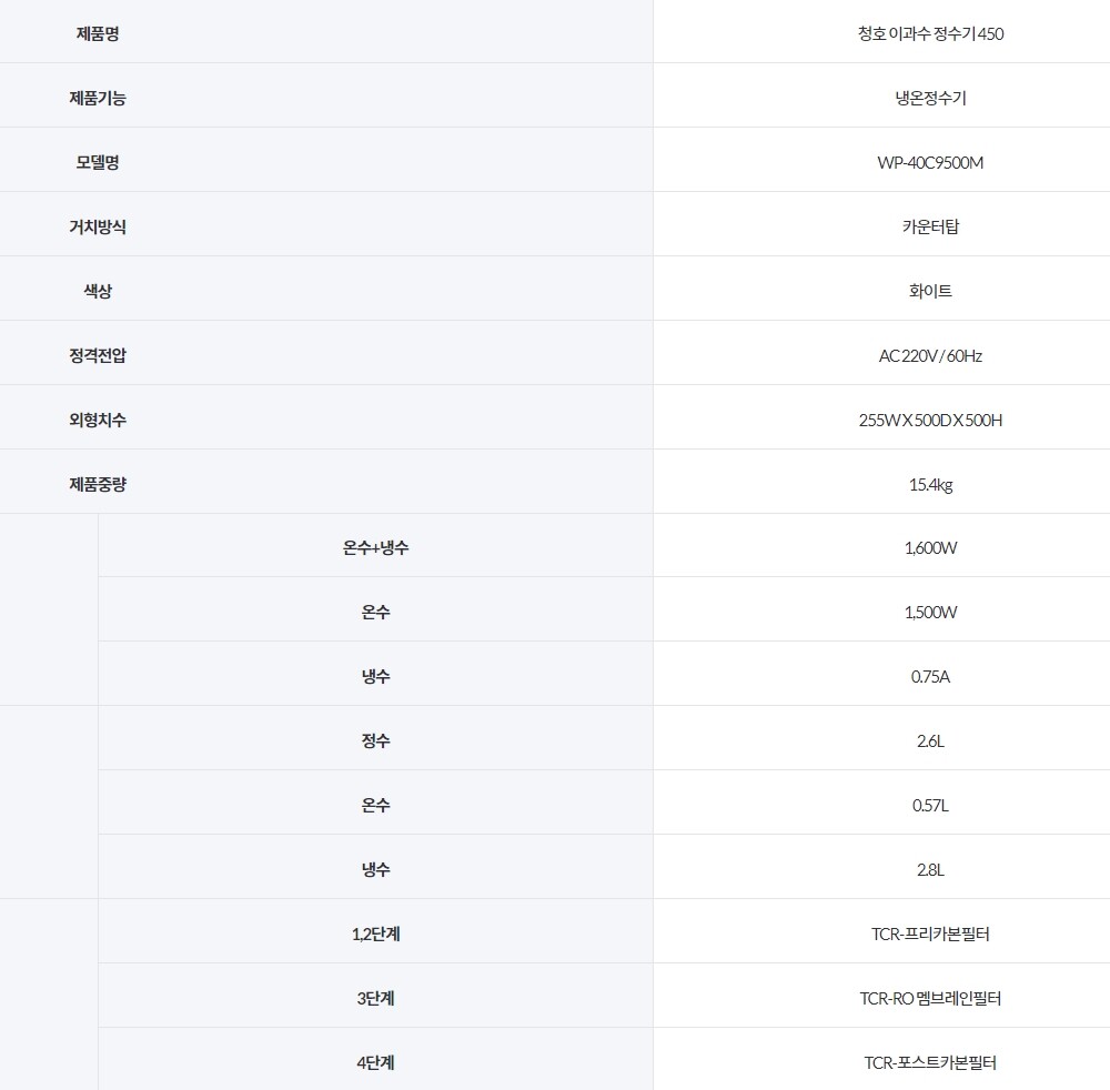 WP-40C9500M 청호나이스 이과수 450 냉온정수기 *월