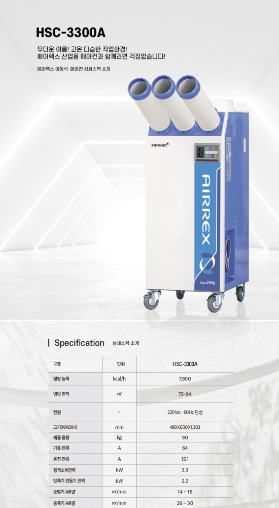 에어렉스 이동식 에어컨 hsc-3300A