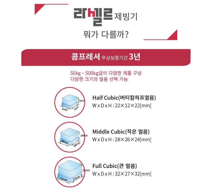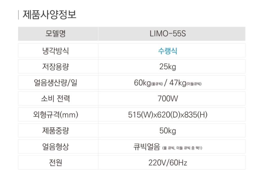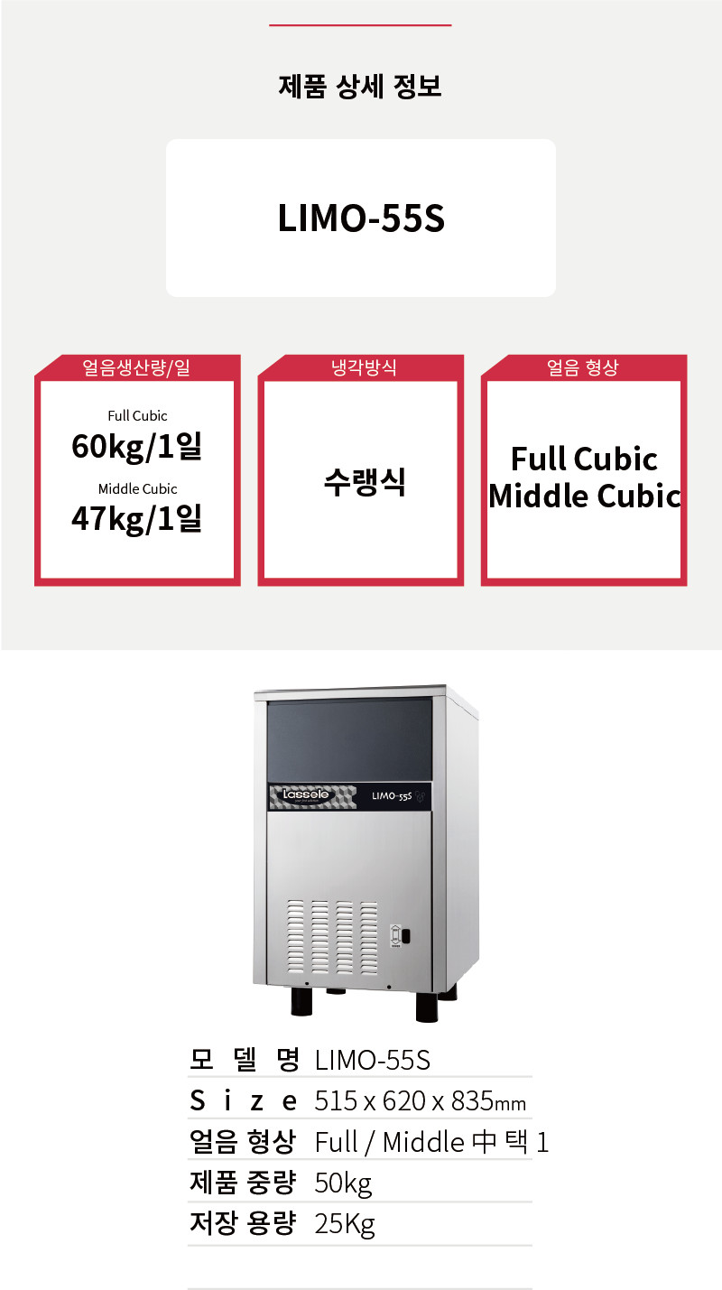 라셀르 [LIMO-55S] 얼음 생산량 60kg/일 업소용. 영업용. 카페용. 제빙기. 큐빅얼음. 수랭식.